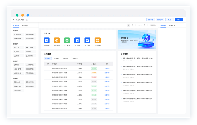 平台提供大量业务和政务类型组件,以及组件扩展能力